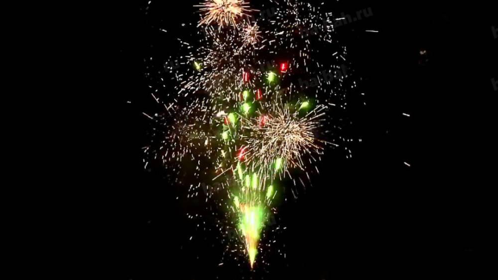3. Поток разлетающихся трещащих искр, красных и зеленых огней.